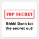Surprise party envelope seal stickers featuring a red top secret stamp and black customisable text: Shhh! Don't let the secret out!
