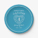 Topaz celebrating 4 years of love wedding anniversary party paper plates. Simple outline heart stone line art graphics blue and white Topaz Wedding Anniversary paper plates. Customise with your own wedding party details. The 4th Anniversary is traditionally associated with blue topaz and the heart symbolises love. Graphics and design by Sarah Trett for www.mylittleedenweddings.com on zazzle.