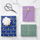 Three complementary papers featuring topiary, exotic plants, blue and white ceramics, and stripes.