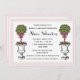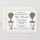 Pretty garden topiaries in classic urns flank your invitation text. Pink and green border. Fully customisable text and topiary placement. Coordinated postage, thank you notes and party favour buttons also available. PinkInkArt original!