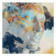A luminous human profile in pale white and beige becomes a living canvas for swirling topographic lines and radiant colour waves. Electric turquoise, fiery orange, coral, golden yellow, and teal contours ripple across the face like visible thoughts, emotions, or universal energy, while subtle earthy brown textures reveal deeper layers beneath. The intricate linework and fluid motion evoke creative awakening, mental flow, spiritual vitality, inner complexity made beautiful, and the sacred intersection of mind and cosmos—perfect for meditation spaces, therapy offices, creative studios, modern bedrooms, home offices, or as empowering gifts for artists, mindfulness practitioners, therapists, or anyone celebrating self-discovery, emotional depth, creative energy, or vibrant introspection.