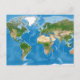 This detailed world map illustration features realistic topographic coloring that highlights Earth’s natural terrain and elevation. Continents are rendered in rich greens, browns, and tans to reflect vegetation, mountains, and deserts, while deep and shallow ocean blues add depth and contrast. The design offers a clean, informative, and visually striking representation of the planet, ideal for geography lovers, educators, and earth science enthusiasts.