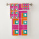 This towel set has a geometric design made from Ls in different directions repeating across the design.