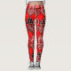 These leggings have a Valentine's design of hearts with tops to tops and bottoms to bottoms with graphics inside on a field of red.