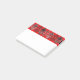 This Post-It notepad has a Valentine's design of hearts with tops to tops and bottoms to bottoms with graphics inside on a field of red.