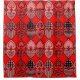 This shower curtain has a Valentine's design of hearts with tops to tops and bottoms to bottoms with graphics inside on a field of red.