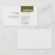 The text elements are arranged in two columns arranged right and left around a centre aligned space. The design can accommodate most normal business card entries, however excessively long text lines are best avoided in order to maintain the balance of the design. The reverse of the card has been left blank, which can be useful for jotting notes or can be further customised.