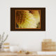 This print features a close-up photograph of a "Torch Lily" bloom with back lighting. The flower is also known as a "Red Hot Poker." The photograph is bounded by a thin orange line and a wide brown frame. The image can be printed from the "Huge" size down or any of the smaller sizes.