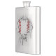 The product is a good size and came exactly as it was pictured. The lid is not attached to the flask, which could be dangerous on drunken nights... The print came out surprisingly well and looks very sharp. Would definitely recommend.