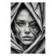 A surreal pencil sketch of a woman’s face emerging through jagged, torn fabric layers. Her intense eyes, parted lips, and high cheekbones are softly shaded, conveying emotion breaking through the surface. The surrounding abstract ribbons of torn cloth add tension, mystery, and a dramatic, introspective quality.