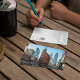 We got these postcards of places with all of our travels for people to send out notes at our wedding! .