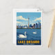 Send a piece of modern and classic Canadian art with this postcard! Inspired by mid-century travel posters, this design showcases the iconic Toronto skyline, including the CN Tower, viewed from Lake Ontario. The graceful swans in the foreground add a touch of natural beauty to the Great Lakes city. A perfect souvenir for city lovers and fans of clean, retro design.