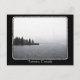 A beautiful moody photograph of the Toronto skyline barely visible through the fog on a rainy day as seen from Toronto Harbour is surrounded by a graphic black and white picture frame. "Toronto, Canada" is in white type on the bottom black border. Customisable - add your own message with the type tool.