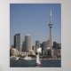 The Toronto, Ontario harbour and skyline on a sunny day, with red sailboat in the foreground. Available in all sizes and surfaces