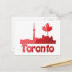 Glossy illustration in red of the Toronto downtown skyline with the Canadian Maple Leaf