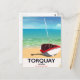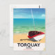 Torquay, Devon vacation poster print of a seaside boat on a beach.