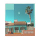A colourful photo of a Spanish town with a traditional building, a crescent moon and a palm tree. Valencia, Alicante.