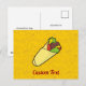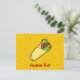 Cartoon illustration of tortilla sandwich wrap. Junk food outline icons yellow pattern background. Custom text.