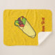 Cartoon illustration of tortilla sandwich wrap. Junk food outline icons yellow pattern background. Custom text.