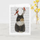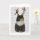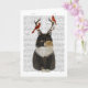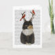 Tortoiseshell Cat with Antlers and Red Birds Card