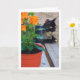 Tortoiseshell Cat with Firecracker Flowers Greeting Card. You can easily customize this product for free if you would like to add wording or change the color of the background.