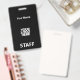 Easily personalise this Custom Administrative professional Name Badge without photo, with Scan Qr Code and large business logo. A simple business design in simple cool total black and white colours fully customisable in front and back sizes, sans-serif basic and modern fonts and a professional and clear look, perfect for small business employee, boss, guests. These business id badges supplies are avaiable with lanyard, metal clip or with retractable. No minimum order, but save money and enjoy Zazzle discounts by multiple orders!