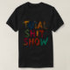 I give wanted to give this a 4 instead of a 5 because these Basic DARK T0shirts run unexpectedly SLIM or Narrow. Which is great if you do not have a potbelly, but I have a paunch. It isn't the shirt's fault that I've got a beer belly. The design and shirt itself is a quality cotton shirt. The color is more of a deep purple, but still a very pretty color. The Basic DARK T-shirts run a bit SLIMMER than the Basic Ts. The neck is a fraction narrower (or seems to be narrower) also. I'm a paunchy middle-aged woman and my neck is 12 inches (31cm) thick and the neckline fell about the same as in the photo of the man, and I had the desire to tug it a bit. So if you're a thick necked man or like loose shirts, be aware these are slimmer shirts. Once I get rid of my lockdown paunch it'll look great. The shirt washed well in cold water with no apparent bleeding. We don't have a dryer, so it hung dry. Did not shrink. Love the colors and the design. The design looks smaller on my shirt than it does on the model on-line. But still, it looks good on the shirt. The printing looks as it does on the model, just the size seems fractionally smaller. Washed garment in cold water, hung dry and design appeared unaffected.