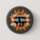 A total solar eclipse will occur on August 21, 2017, crossing the United States. This humourous button has an image representing the eclipse with the words "I Mooned The Sun" and the date 08-21-17.
