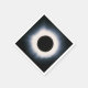 Near black and white artistic view of a total solar eclipse, showing the bright glow of the sun’s corona radiating from behind the blocking image of the full moon.