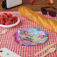 Totally 80's Bright Fun Heart Birthday Party Plates. Customise with any text. Matching items are available.