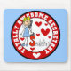 Totally Awesome Secretary mousepad with a blue background, red, black, and white circular design featuring a stick figure secretary on the phone, lots of red hearts, and text that reads "Totally Awesome Secretary"! This mousepad is great for secretaries week or any time to show appreciation to a great secretary!