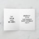 This card is great fun and good quality. I loved the humour inside and on the back. There is the opportunity to change the orientation of this card from landscape to portrait, which I did. It is relatively straightforward to amend the typeface to fit the new orientation. It was well packaged with no plastic. The printing on this card is excellent.