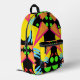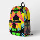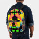 A wild fun cartoon style retro new wave black and colourful nostalgic fun multi colour crazy neon nineties vibe electrifying epic retro style abstract fluorescent flashback vintage aesthetic deluxe fun cute all-over style unique backpack fun book bag for school or life. Get a super fun patterned backpack today.