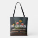 Description: A fun and playful tote bag made from 100% organic cotton, featuring a vibrant graphic of a smiling sun with sunglasses, surrounded by colourful doodles like clouds, stars, and rainbows. The phrase "Bring Sunshine Everywhere" is printed in a funky, bold font beneath the artwork. The tote bag is roomy enough for your everyday essentials, with sturdy handles and reinforced stitching for durability. Its lightweight yet durable fabric makes it the perfect companion for shopping trips, beach days, or casual outings.