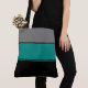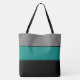 This cute stylish medium size tote bag is shown in a colour block design in colours of Black, Grey and Teal.