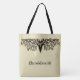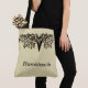 Tree with weeping branches, above personalised name. Reverse side shows tree branches in kaleidoscopic pattern. Background light beige.