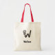 Letter is a capital W formed by a cat with a crimped black tail. Beneath is Name to be personalized - defaults to Wallace. Reverse side shows two paw prints in black.