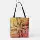 Rotating Eiffel Towers adorn this tote bag. One side pink pastel-coloured; the other side bright tie-dye style colours. Carry whichever side out depending on your outfit or mood.