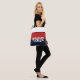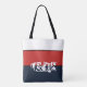This cute stylish medium size tote bag is shown in red, white and blue with thin black stripe and handles in a striped colour block with the special text Vegas.