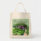 Photo image of green and purple vegetables (cucumbers, beans, egg plant, etc.) in front of sign reading "Produce"
