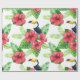 Tropical bouquet with toucan is made of separately painted elements, seamless pattern made in Illustrator.