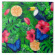 Tropical pattern made of hand painted watercolor elements- leaves, toucan, hibiscus and butterfly.