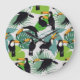 Toucan Bird: Palm Leaves Pattern Large Clock
