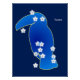 The Toucan Constellation (Tucana) with its white stars accompanied by their Greek letter, on the silhouette of the bird in a gradient of blue.