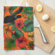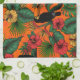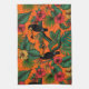 tropical seamless pattern with tropical leaves and flowers and 2 toucan birds.