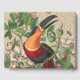 This lovely collage is based on elements from the Channel billed toucan bird painting.From 1842 edition of Le Jardin Des Plantes by Paul Gervais, botanicals from antique books, and a background by antique William Morris wallpaper.