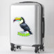 The word "TOUCAN" is displayed at the bottom in bold, bubble-style font. The light grey letters outlined in pink perfectly complement the toucan’s vivid beak, adding a playful and cohesive touch to the design. A clean, white border around the entire sticker ensures it pops on any surface, whether it’s a wall, piece of furniture, or another decorative item.