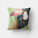 Toucan Portrait with Tropical Leaves Cushion