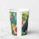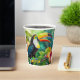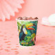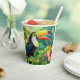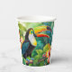 Image of a tropical toucan bird surrounded with green leaves and hibiscus flowers, generated with the help of AI. You can easily personalise this paper cup with your own name or text.