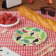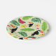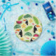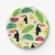 Colourful summer seamless pattern with funny toucans, juicy watermelons, tropical flowers and delicious young coconuts.